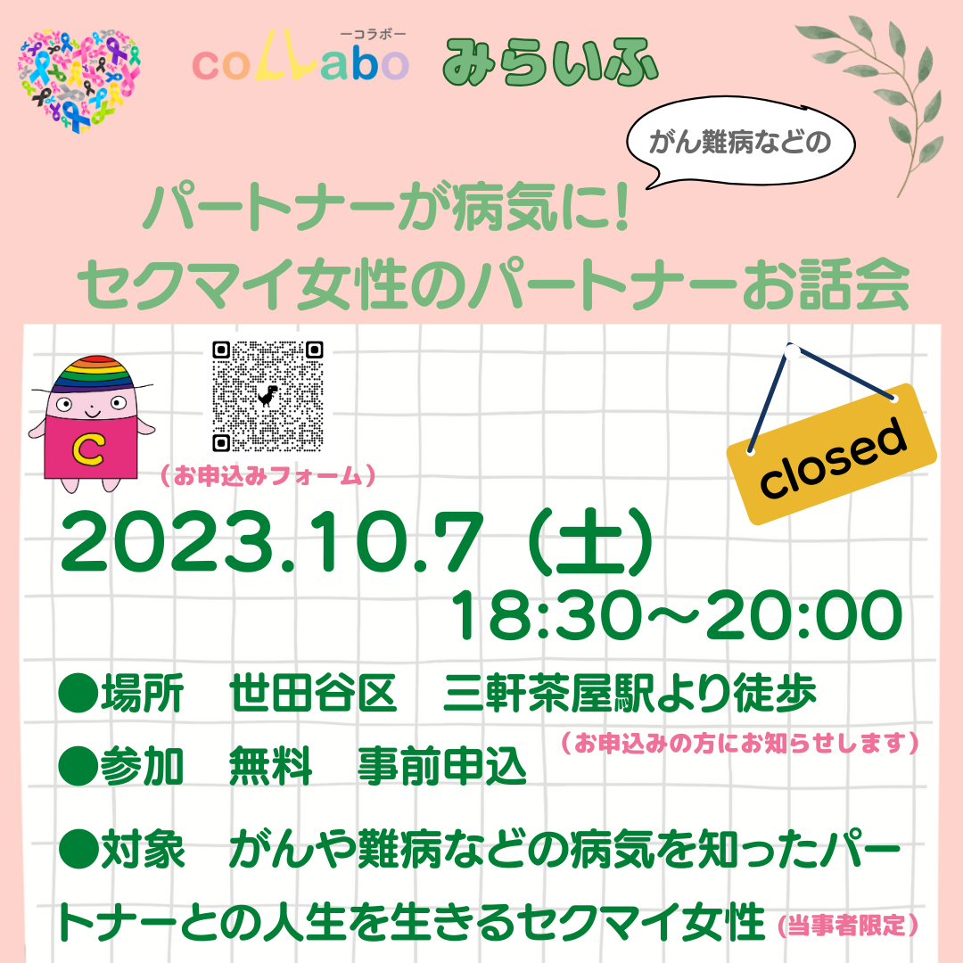 対象 がんや難病などの病気に罹ったパートナーとの人生を生きるセクマイ女性(当事者限定)